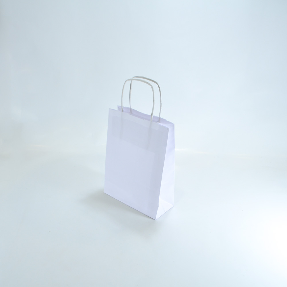 Bolsas de papel blanco de 70 gramos resistente e ideal para artículos o regalos de diferentes tamaños. Posee asas de papel trenzado con refuerzo.