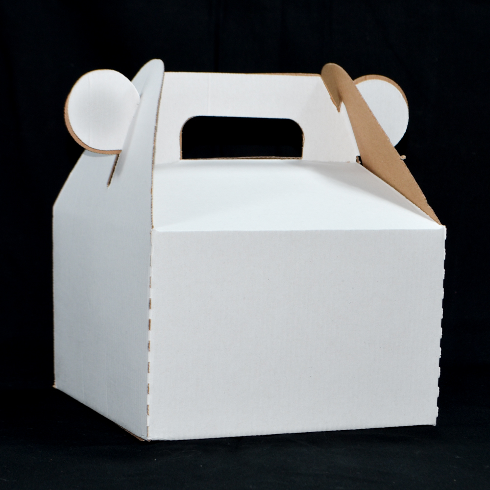 Caja tipo lonchera de cartón corrugado calibre 110, ideal para pasteles, galletas, regalos u otros productos.