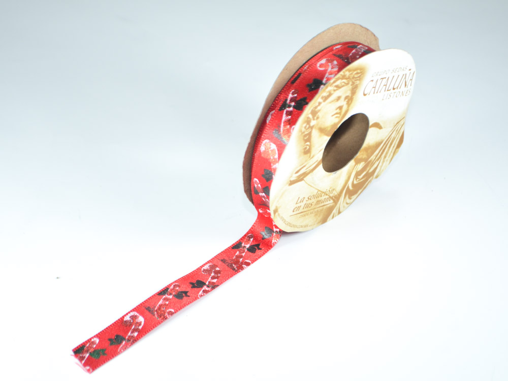 Liston de tela satinado con estampado navideño ideal para manualidades, regalos y otros detalles o empaques. El rollo tiene una longitud de 10 metros.
