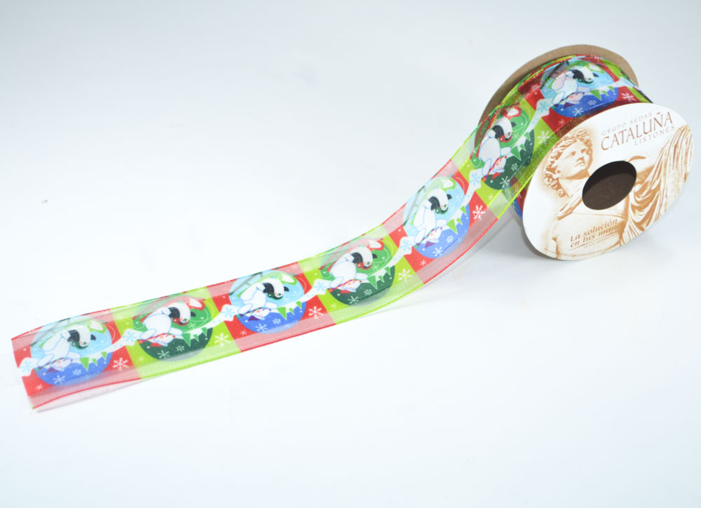 Listón de tela satinado con estampado navideño, especial para realizar diferentes empaquetes, manualidades o detalles. El rollo tiene longitud 10 metros.