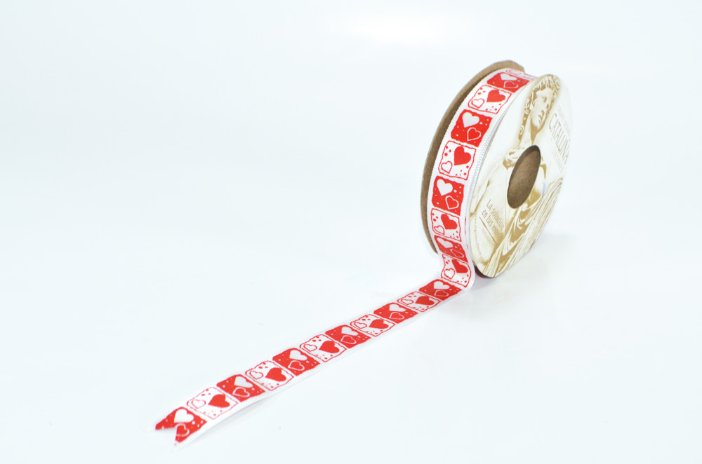 Listón de tela satinado con estampado de corazones, especial para realizar diferentes empaquetes, manualidades o detalles. El rollo tiene longitud 10 metros.