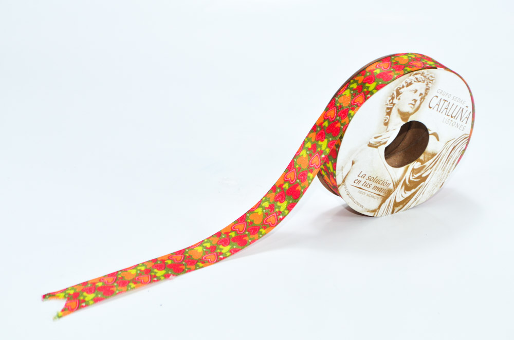 Listón de tela satinado con estampado de corazones, especial para realizar diferentes empaquetes, manualidades o detalles. El rollo tiene longitud 10 metros.
