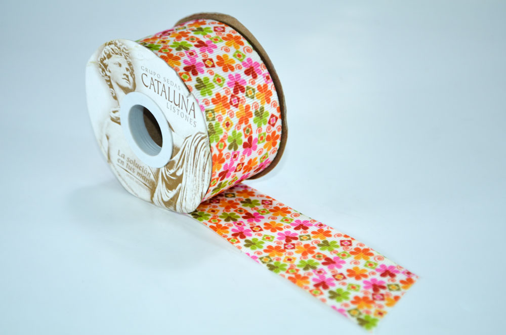 Liston de tela estilo popotillo (grosgrain) con estampado de flores. Ideal para realizar manualidades, regalos entre otros detalles. La logitud del rollo es de 10 metros.