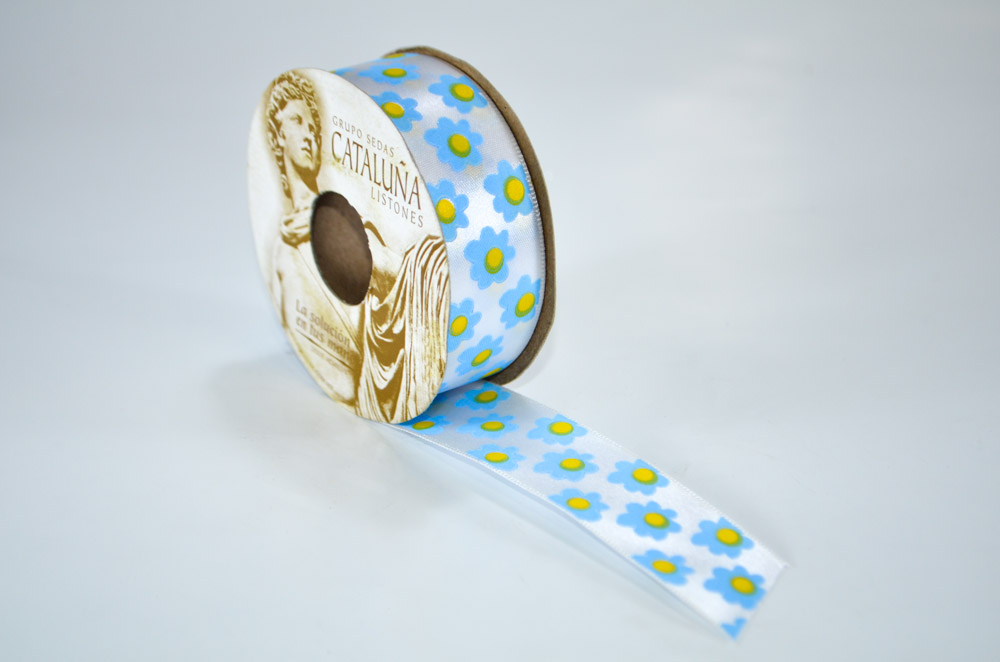 Liston de tela satinado con estampado de flores. Ideal para realizar manualidades, regalos entre otros detalles. La logitud del rollo es de 10 metros.