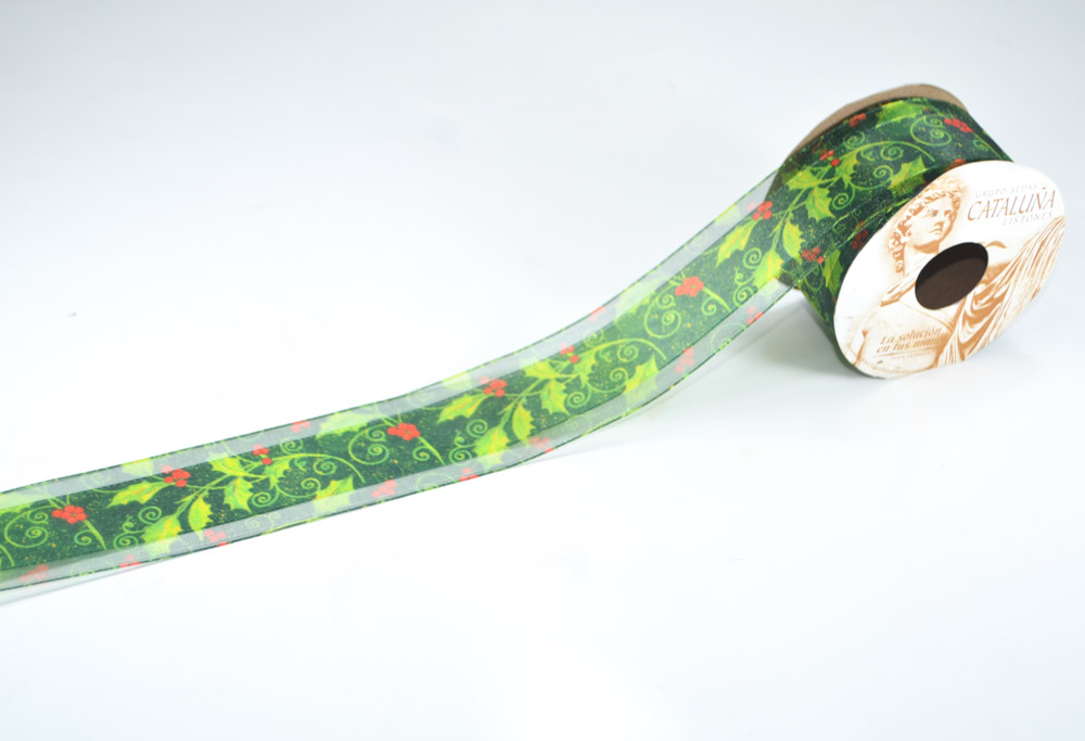 Liston de tela con organza y satín, estampado navideño especial para manualides, moñas, regalos y otros detalles. La longitud del rollo es de 10 metros.