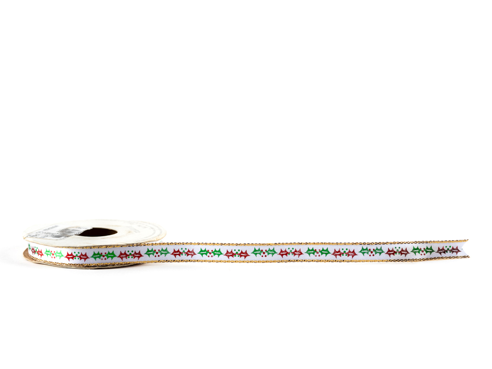 Listón de tela con estampado navideño, especial para realizar diferentes empaquetes, manualidades o detalles. El rollo tiene longitud 10 metros.