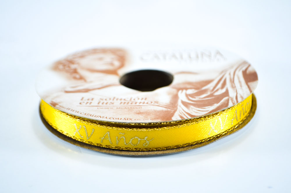 Liston de tela satinado con texto de XV años. Ideal para realizar manualidades, regalos, recuerdos de eventos, entre muchos otros que puedas crear . La logitud del rollo es de 20 metros.