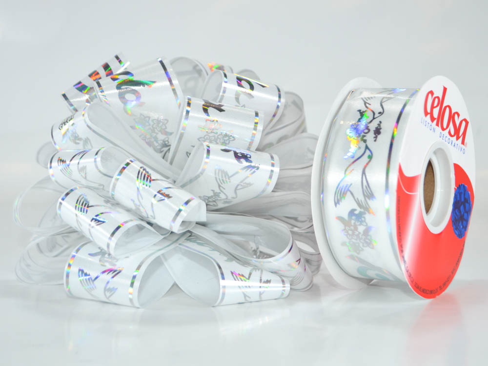 Listón para regalo de polipropileno 100% reciclable con detalles brillantes metálicos especial para realizar moñas o empaques. La longitud del rollo es de 40 metros.