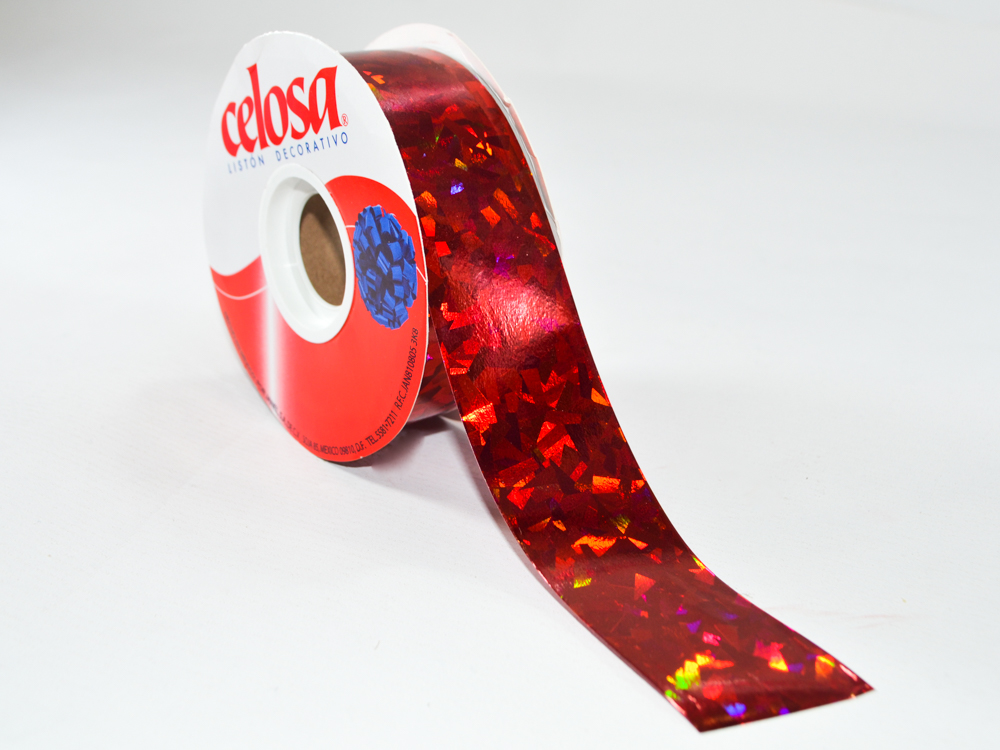 Listón para regalo de polipropileno 100% reciclable con detalles brillantes holográficos especial para realizar moñas o empaques. La longitud del rollo es de 40 metros.