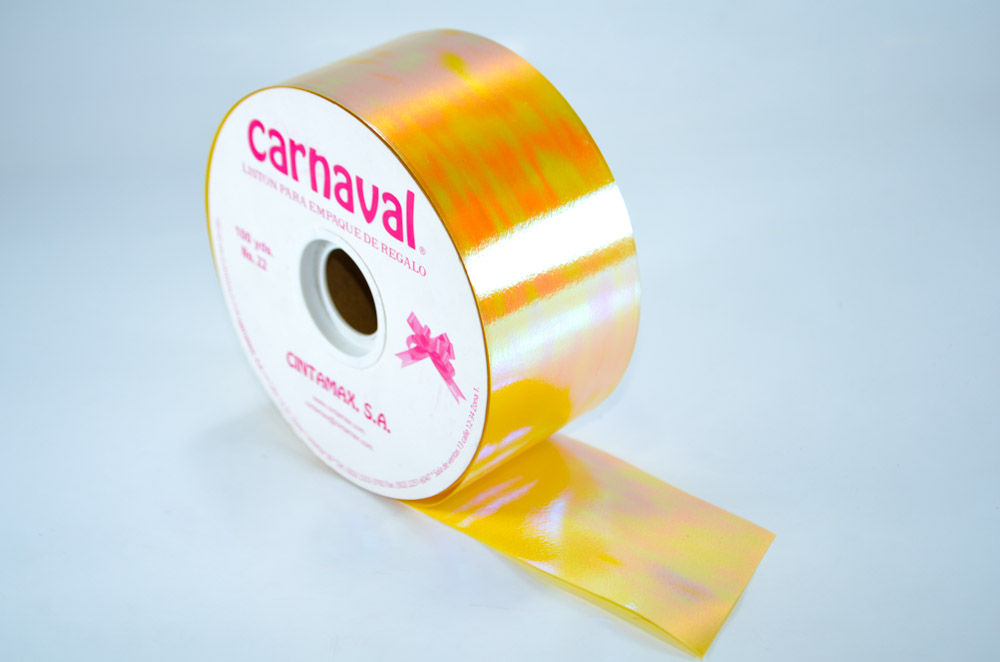 Listón para regalo de polipropileno 100% reciclable con nacarado brillante especial para realizar moñas o empaques. La longitud del rollo es de 100 yardas.