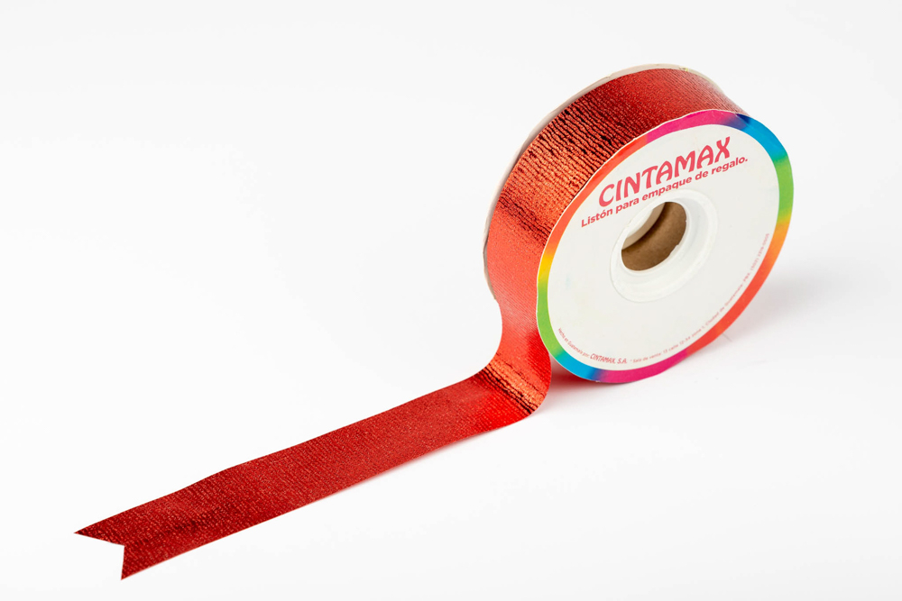 Listón para regalo de polipropileno 100% reciclable con detalles brillantes metálicos y textura, especial para realizar moñas o empaques. La longitud del rollo es de 50 yardas.