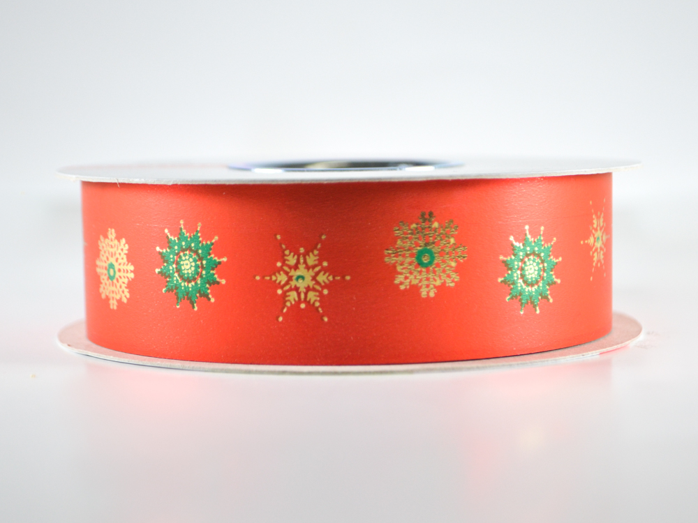 Nuestro listón diseño Firework Flake, con estampado navideño, es perfecto para decorar tus regalos y detalles durante la temporada festiva, cada rollo contiene 50 metros.