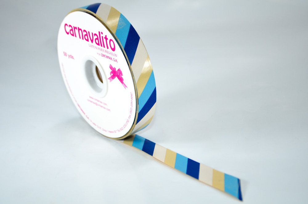 Listón para regalo de polipropileno 100% reciclable especial para realizar moñas o empaques. La longitud del rollo es de 50 metros.