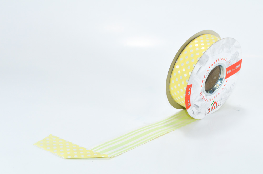 Listón para regalo de polipropileno 100% reciclable especial para realizar moñas o empaques. La longitud del rollo es de 50 metros.