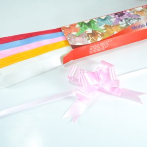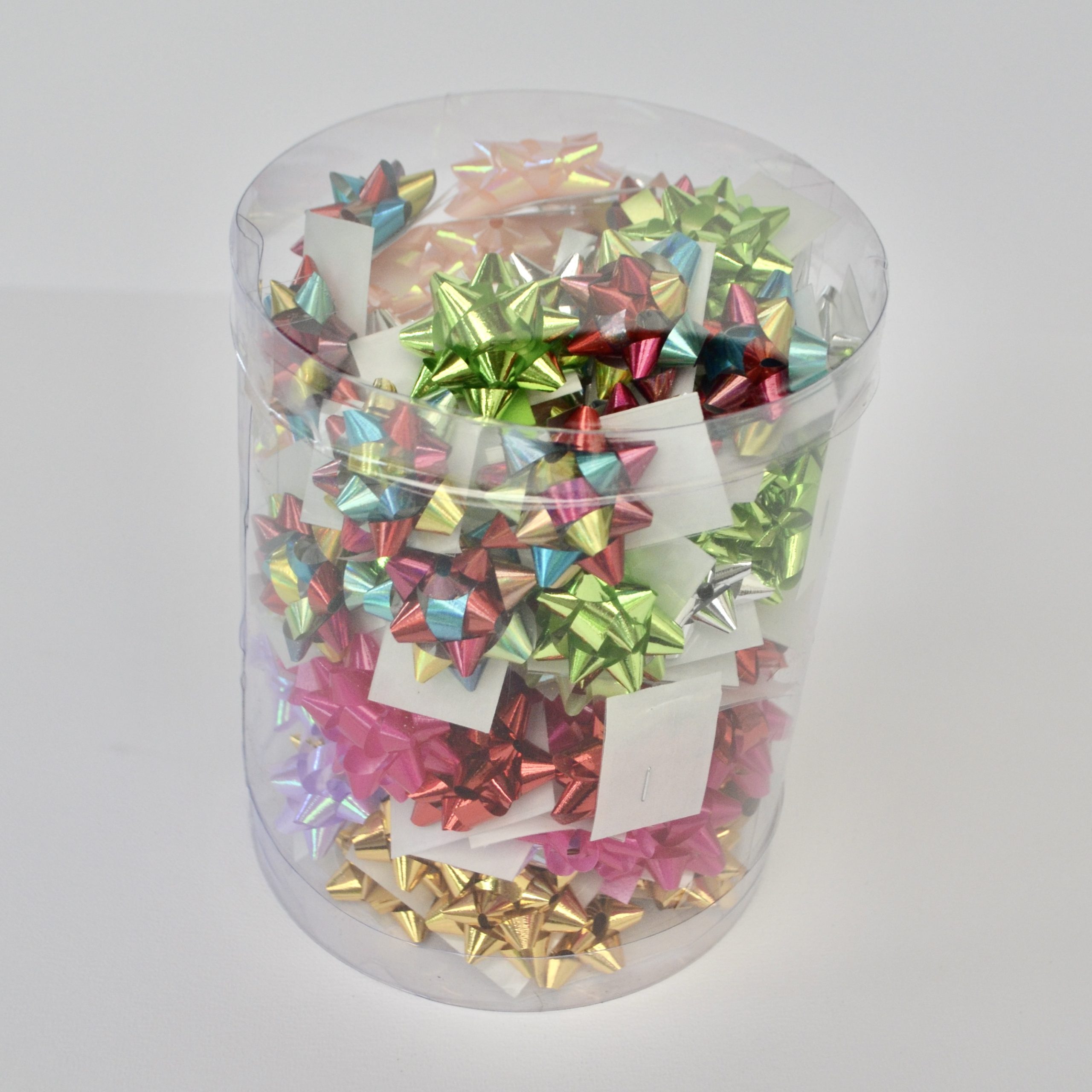 Paquete con 100 moñas surtidas con etiqueta para pegar, ideal para regalos pequeños y cajas de joyería.
