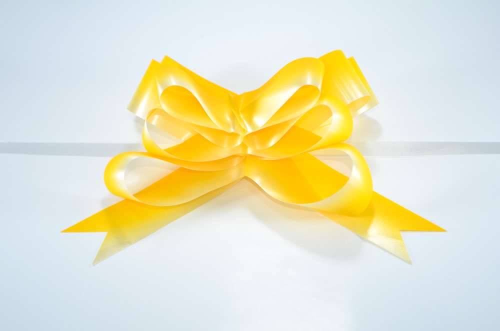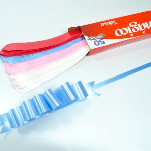 Caja con 50 moñas de un color y tamaño. Moñas de polipropileno 100% reciclable prácticas, sencillas y listas para dar brillo en toda ocasión y en cualquier detalle.