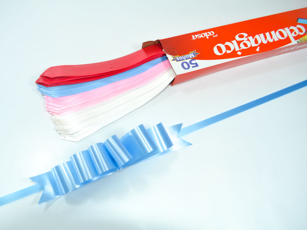 Caja con 50 moñas surtido. Moñas de polipropileno 100% reciclable son prácticas, sencillas y listas para dar brillo en toda ocasión y en cualquier detalle.